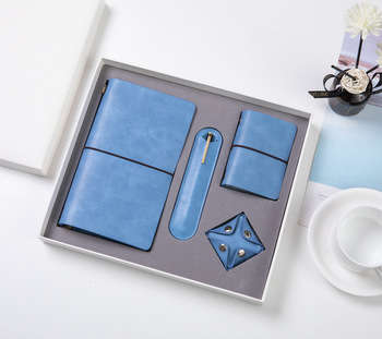 Venta caliente de cuatro piezas caja de regalo de negocios conjunto cuaderno con logotipo hebilla tarjetero llavero Bloc de notas para ocasiones de Año Nuevo