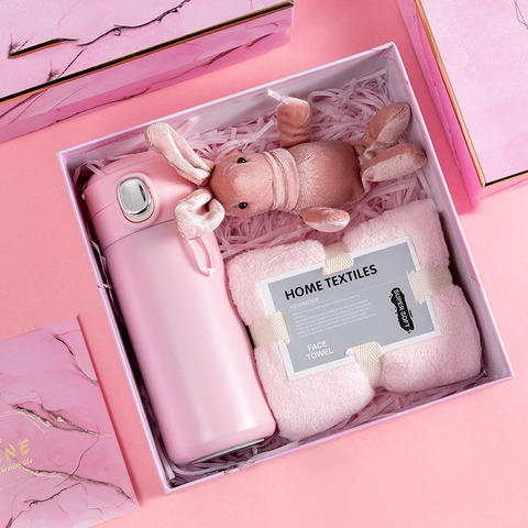 जन्मदिन की शादी के रिटर्न प्रचार के लिए खरगोश गुड़िया के लिए 2025 अद्वितीय सुंदर वैक्यूम कप उपहार सेट तौलिया