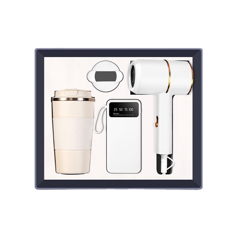 हॉट सेलिंग कस्टम लोगो बिजनेस गिफ्ट सेट में कॉर्पोरेट कॉफी मग पावर बैंक हेयर ड्रायर-मार्केटिंग कंपनी प्रमोशन के लिए
