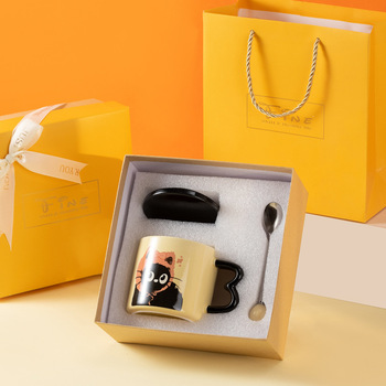 Cute Cat Ceramic Mug with Lid Practical Office Coffee Cup for Home Drinking Milk Coffee Sublimation Friends Gift Set